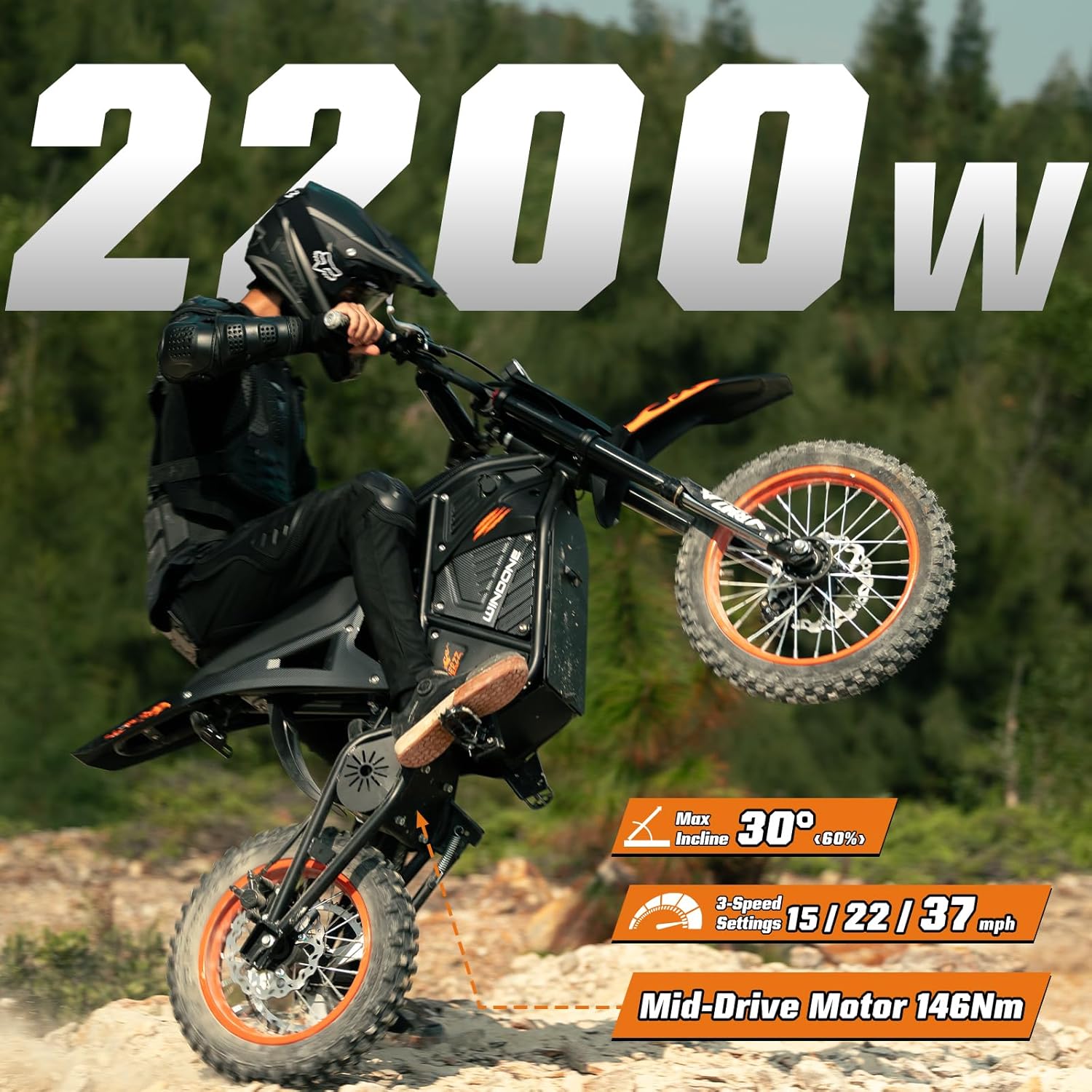 【UNLEASH 2200W OF RAW POWER & SPEED】 Dominate the trails with a massive 2200W peak motor that rockets the RM7 electric dirt bike to a top speed of 37 MPH, delivering an adrenaline-pumping acceleration experience. Engineered to conquer, RM7 electric dirt bike crushes steep 30° inclines and rough terrain with ease. Customize your ride instantly with 3 selectable speed modes (15 MPH, 22 MPH, and 37 MPH) to match your skill level and riding needs.